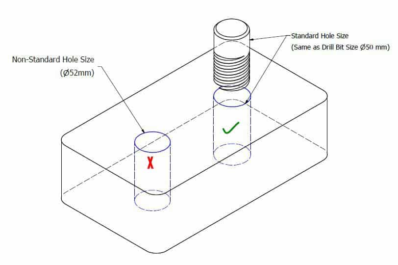 Standard sized holes are milled using standard drill bit sizes. This saves machine time and cost as holes not designed to standard would require an end mill tool.