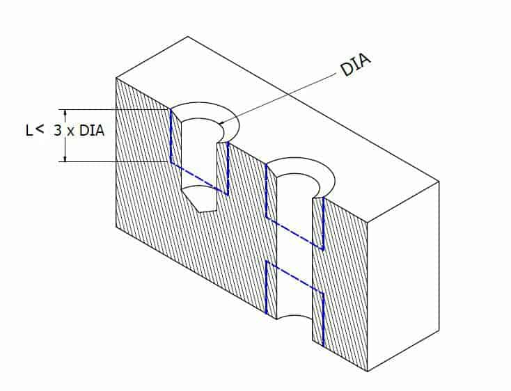 In the case of non-standard holes, the rule of thumb for depth of cavity must be applied, which is the depth must be four times the diameter of the cavity.